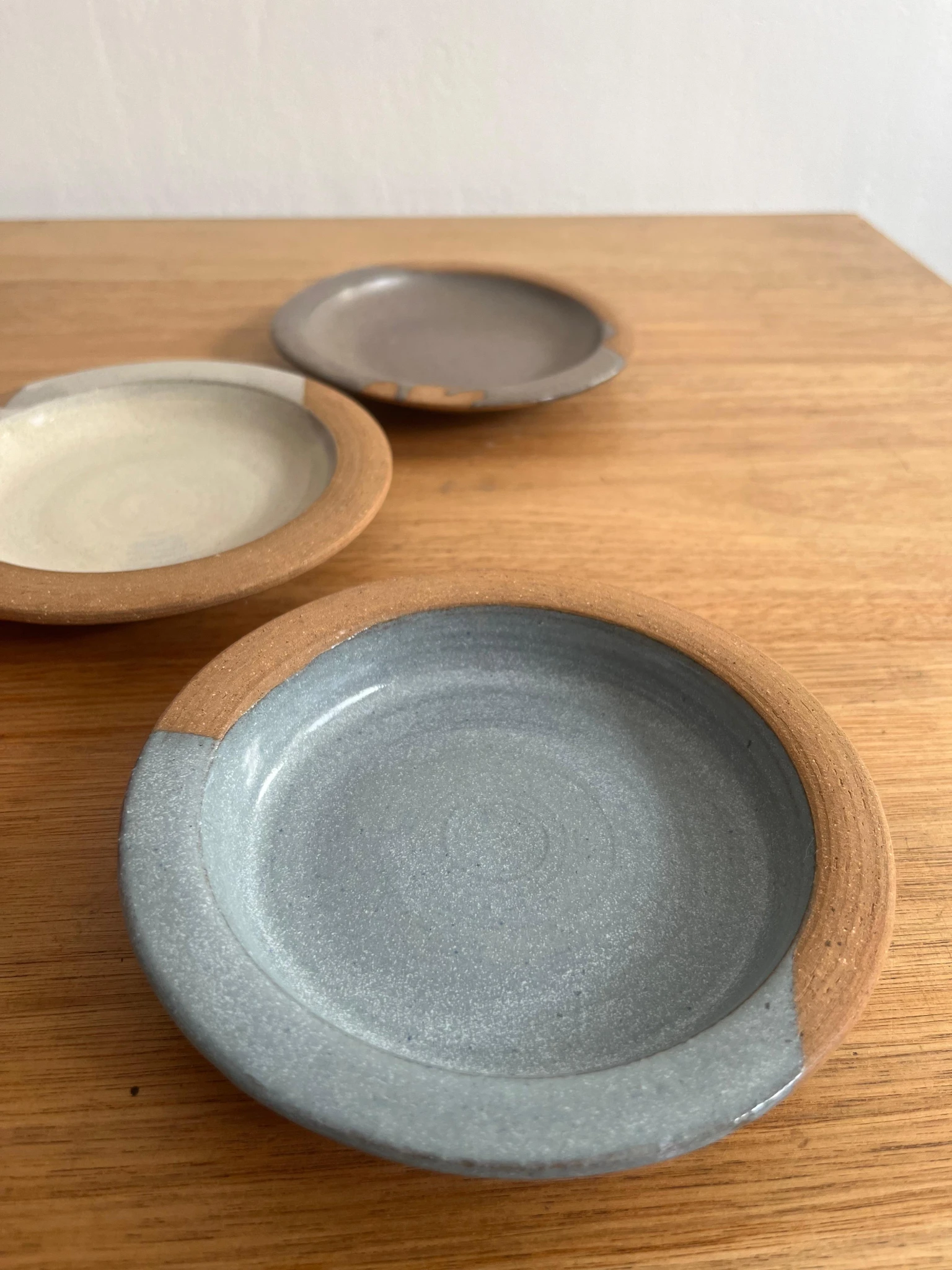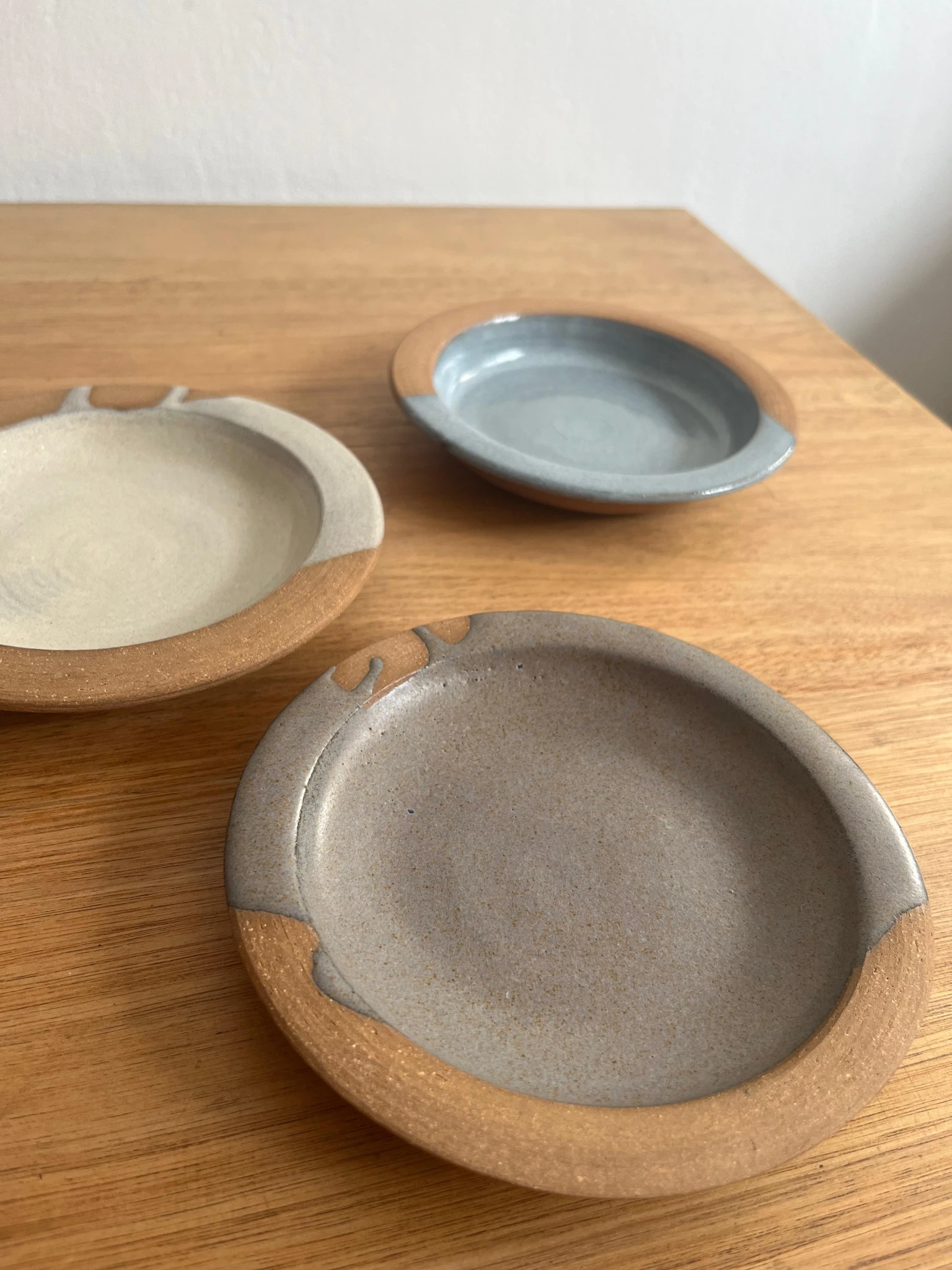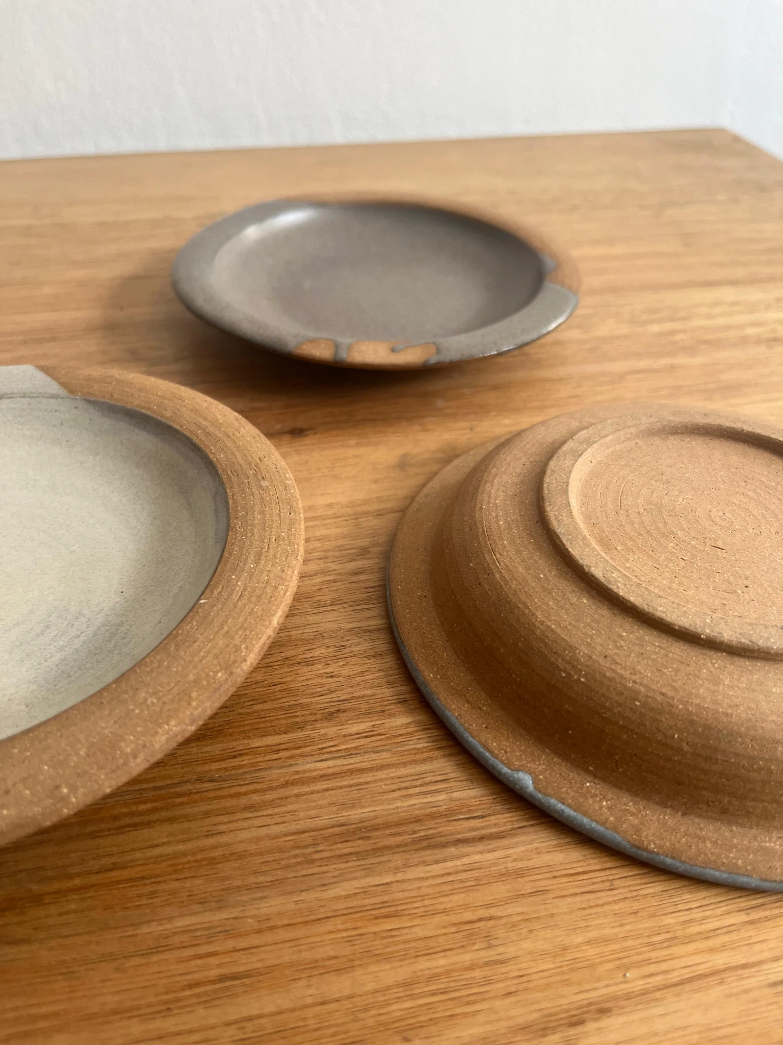 Estos platitos están hechos con arcilla rojiza. Para combinar con las Tazas Amanecer o alguna otra del catálogo. Fueron horneadas a +1200 grados, logrando una pieza de gres resistente. fueron hechas a mano en torno alfarero, con esmalte solo en su interior; el exterior revela las hermosas texturas y colores naturales del material.