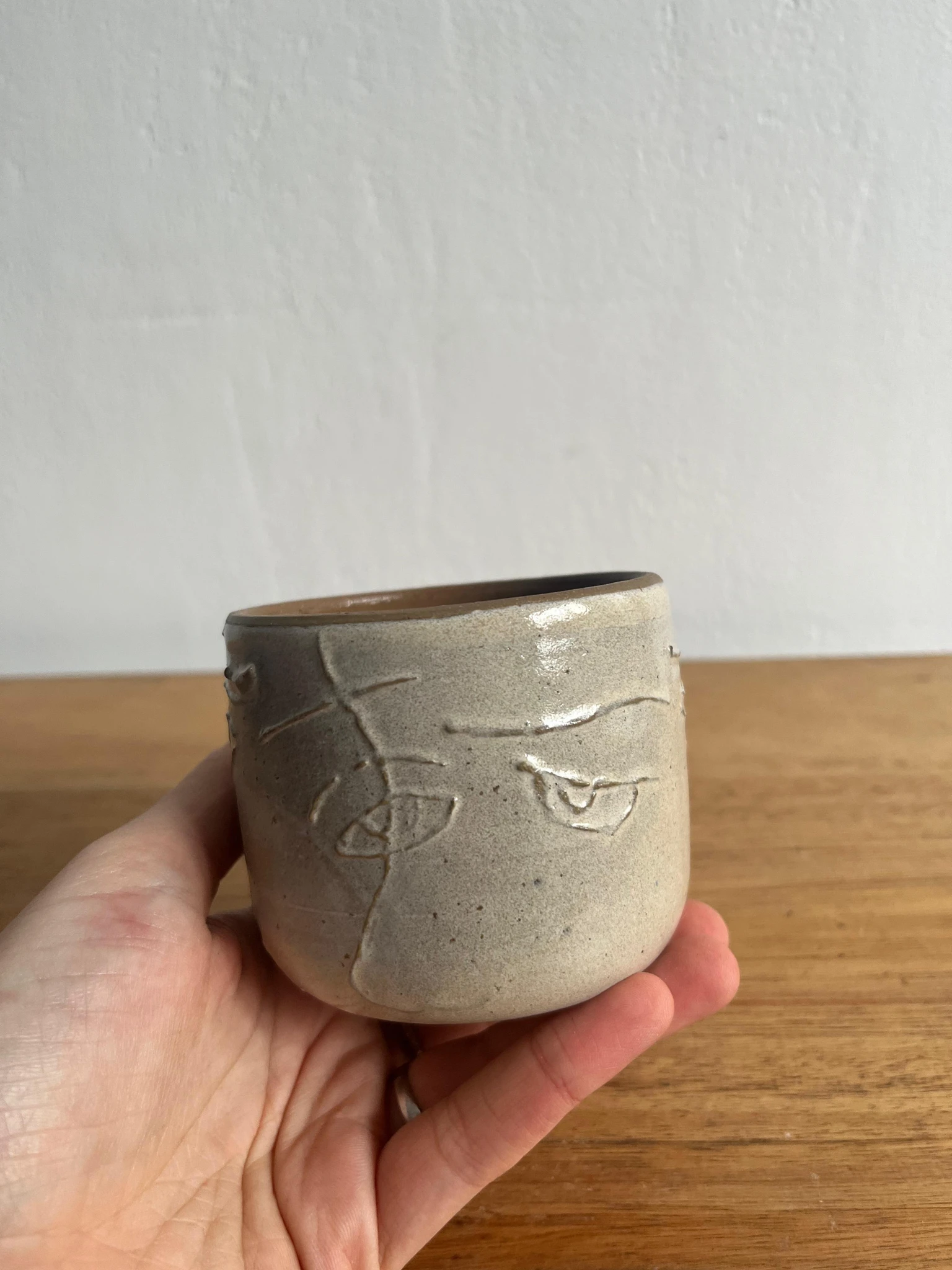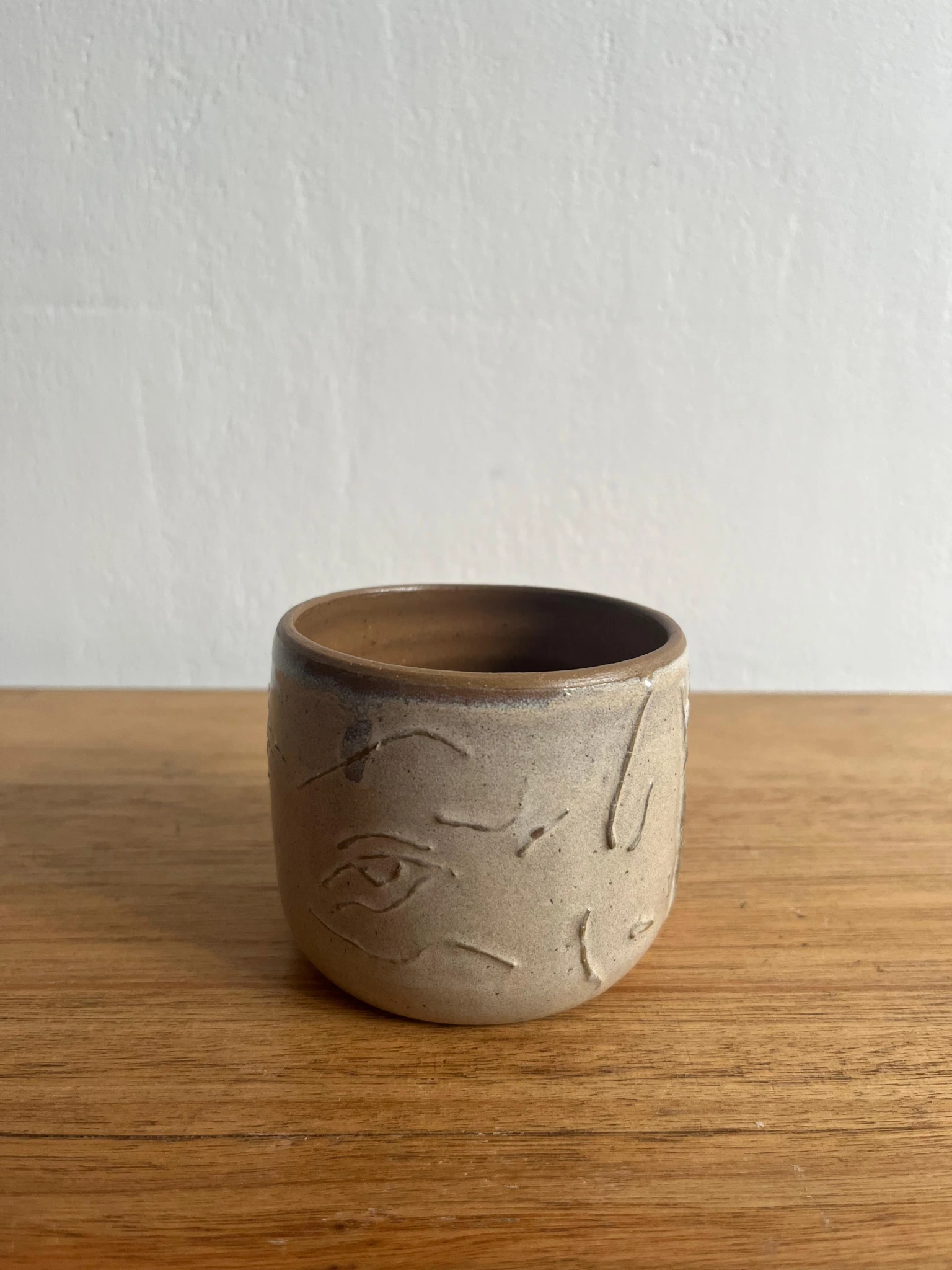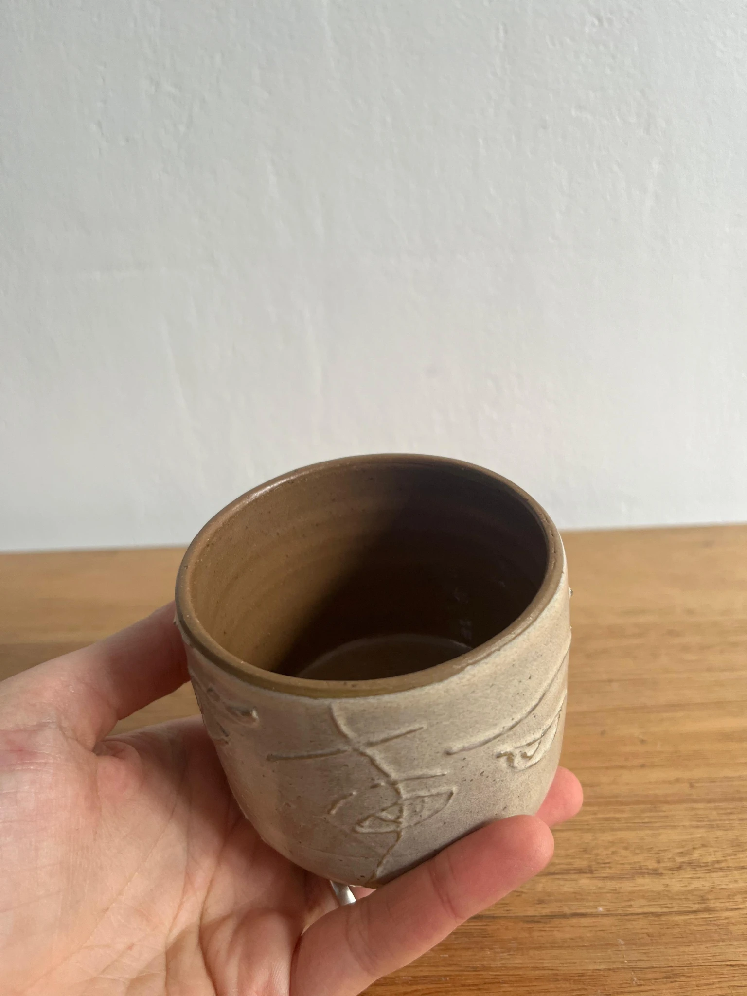 Esta taza es una colaboración entre SeremosMito y Ver Clausi - está hecha con arcilla tostada. Fue horneada a +1200 grados, logrando una pieza de gres resistente. Está hecha a mano en torno alfarero por Aldi, y luego Ver agregó relieve - Tiene esmalte transparente en su interior, revelando las texturas y colores naturales del material; el exterior está terminado esmalte arena.